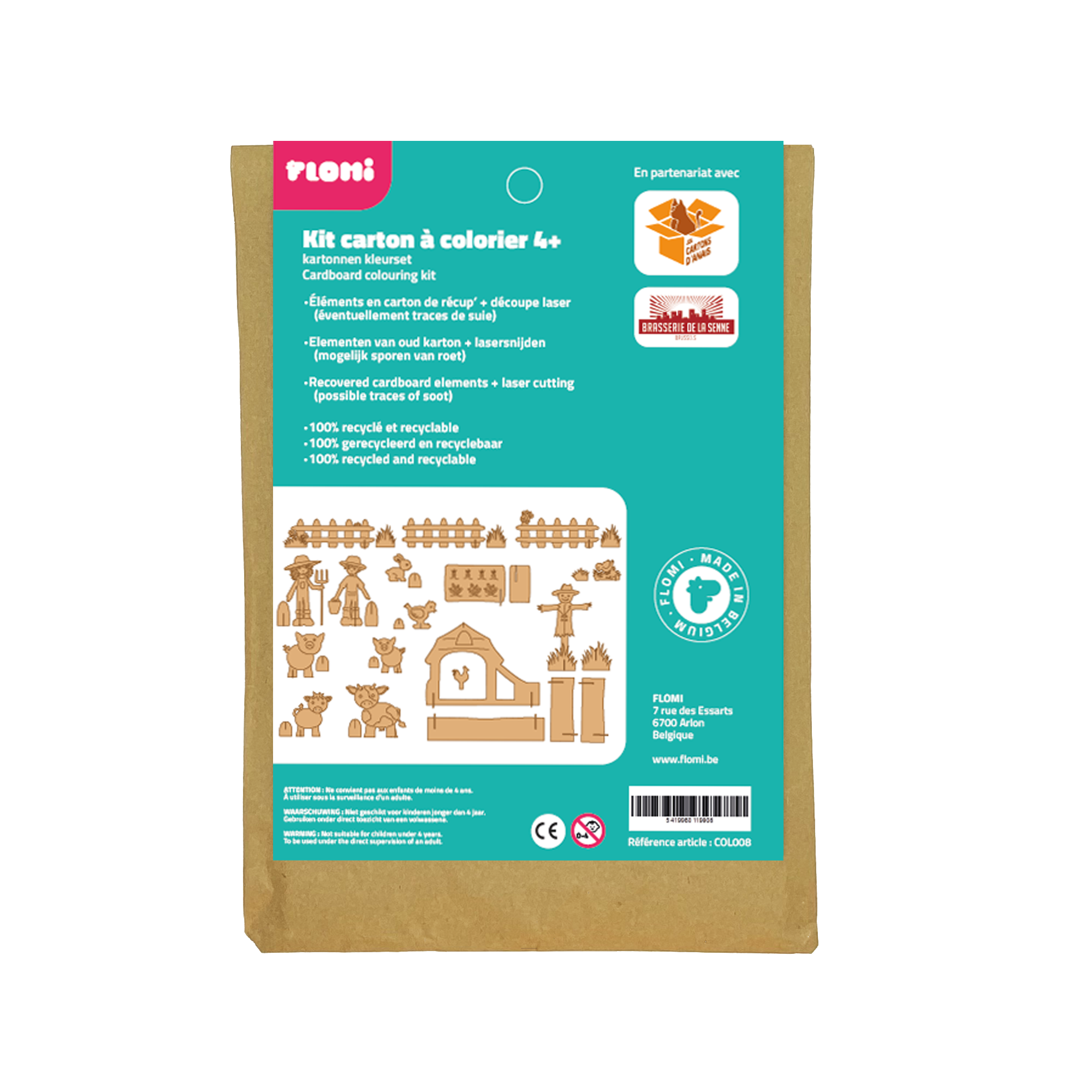Découvrez notre Kit de coloriage A la Ferme, conçu artisanalement à partir de carton recyclé pour une activité à la fois joyeuse, créative et éco-responsable.